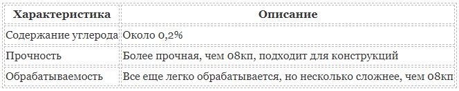 Каждая сталь имеет свою маркировку, и эта маркировка говорит нам о химическом составе и некоторых свойствах стали. И вот как это выглядит для стали 08кп: